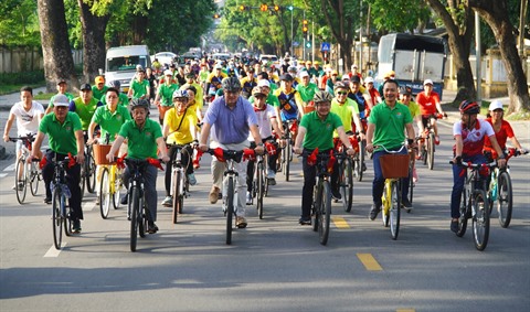 | Balade à vélo en l’honneur de la Journée mondiale de l'environnement (5 juin) à Thua Thiên-Huê au Centre. |