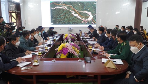 | Séance de travail entre les représentants du Comité national des frontières relevant du ministère des Affaires étrangères du Vietnam et ceux du Laos dans le district d'A Luoi. |