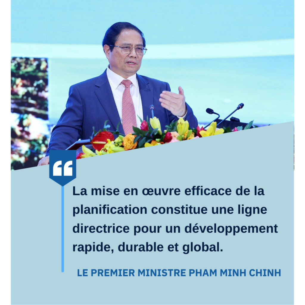 S'exprimant à la conférence, le Premier ministre Pham Minh Chinh a souligné que l'élaboration et l'approbation du plan directeur constituaient une étape importante et devaient être bien mises en œuvre pour garantir la stabilité et minimiser les ajustements. "La mise en œuvre efficace d'une planification constitue une ligne directrice pour un développement rapide, durable et global", a souligné le Premier ministre Pham Minh Chinh.