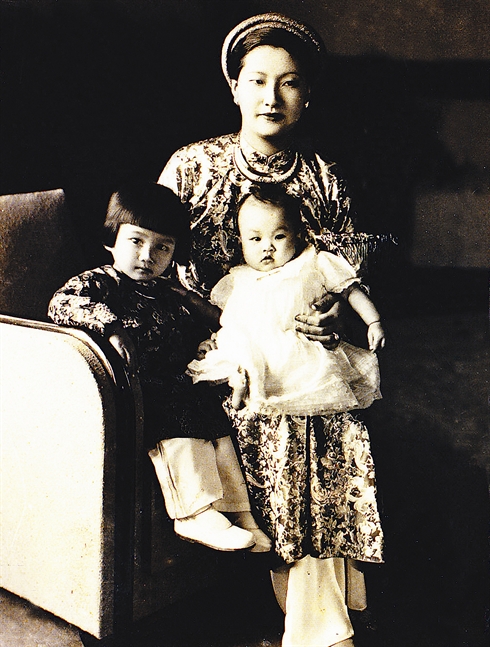 | L'impératrice Nam Phuong et ses deux premiers enfants. |
