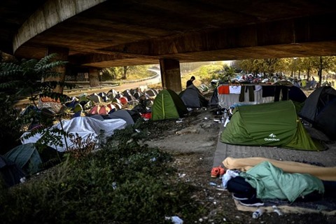 | Un camp de migrants, le 16 septembre 2020, dans le Nord de Paris. |