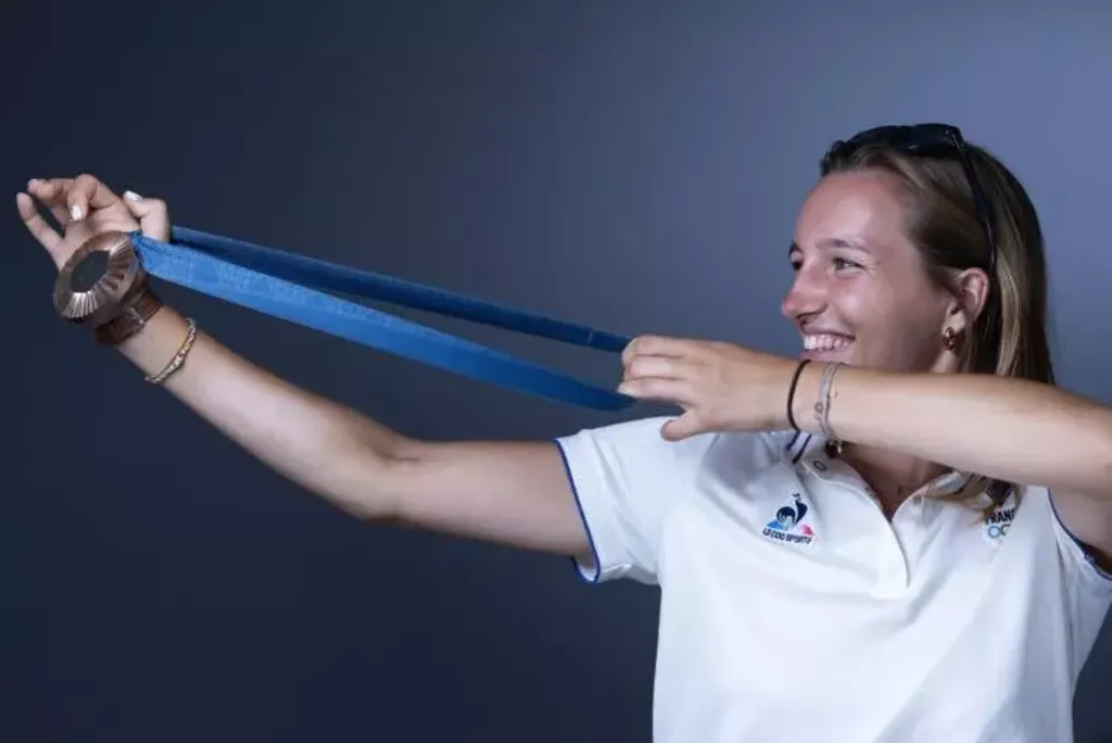 | L'archère Lisa Barbelin, médaillée de bronze aux JO de Paris-2024, le 5 août 2024 à Paris. |