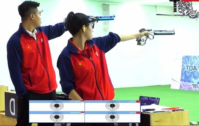 Avant ces médailles, l’équipe vietnamienne a décroché une médaille d’or au pistolet à air 10 m mixte (Pham Quang Huy & Trinh Thu Vinh), une médaille d’argent au pistolet à air 10 m par équipe masculine (Pham Quang Huy, Lai Công Minh, Nguyên Dinh Thanh), trois médailles de bronze au pistolet à air 10m individuel masculin (Pham Quang Huy), au pistolet à air 10 m individuel féminin (Trinh Thu Vinh) et au pistolet sportif 25 m féminin (Trinh Thu Vinh, Nguyên Thuy Dung, Nguyên Thuy Trang).