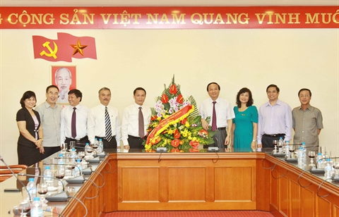 | Tô Huy Rua (4e, droite) a rendu visite le 21 juin à la VNA à l'occasion du 90e anniversaire de la Journée de la presse révolutionnaire du Vietnam. |