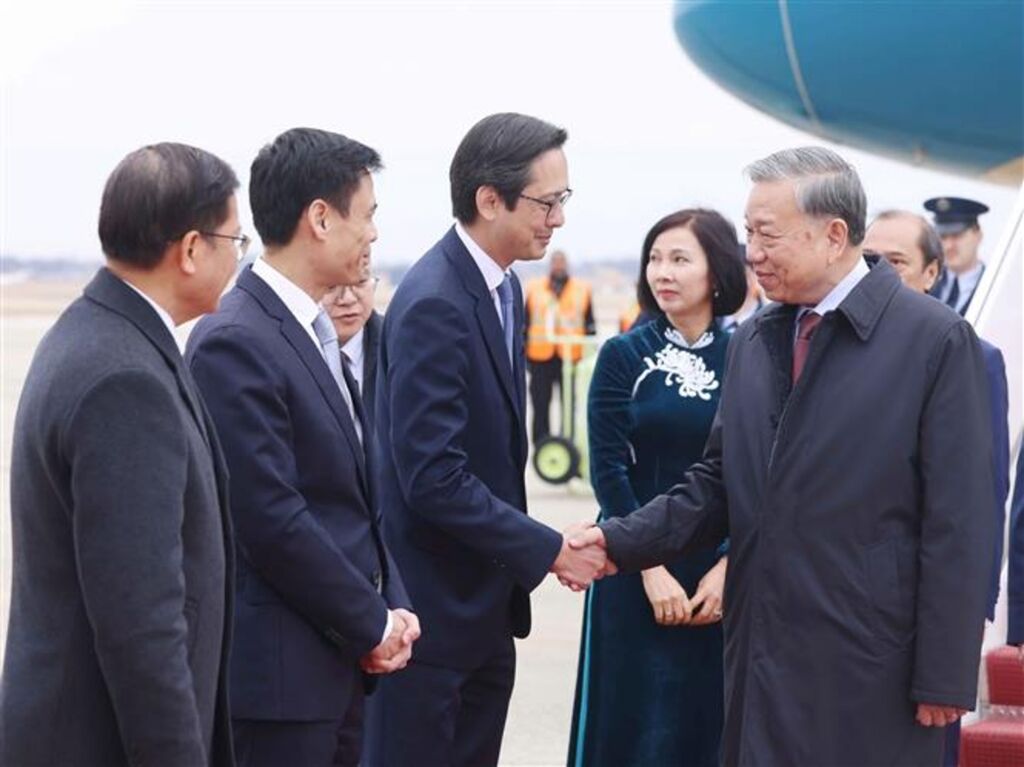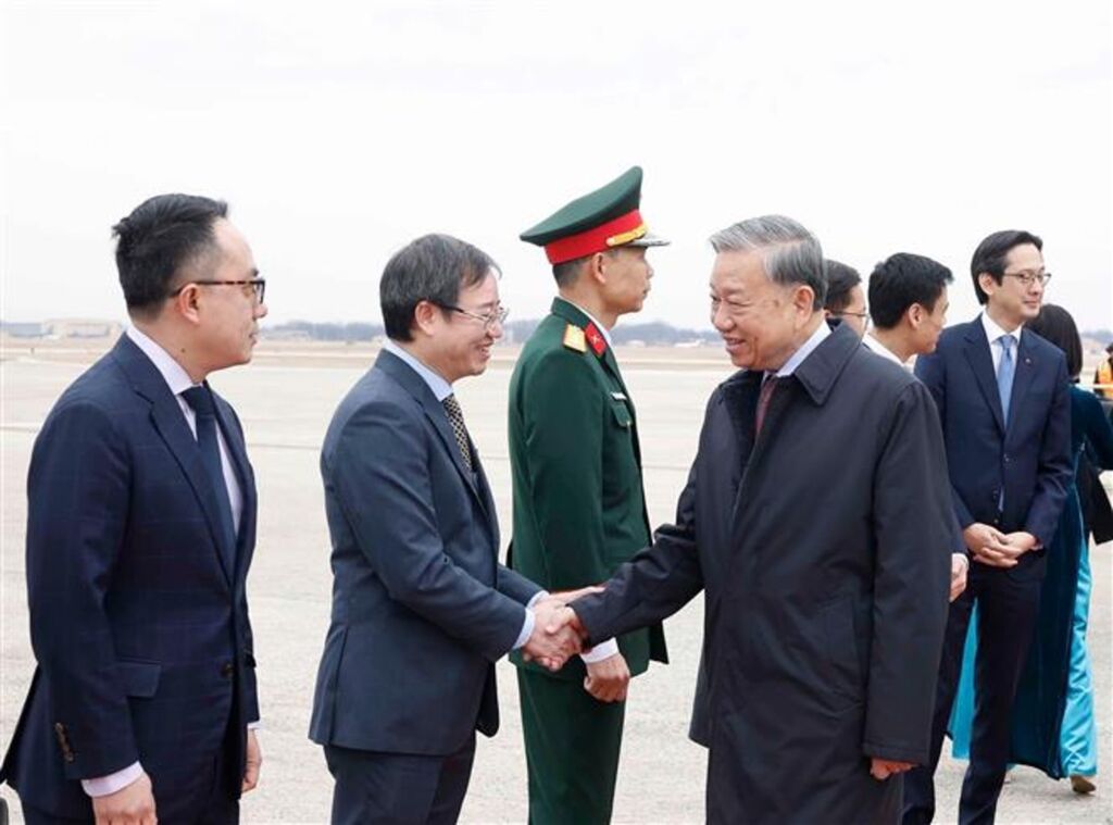 | Le secrétaire général Tô Lâm (droite) est accueilli à l’aéroport d’Andrews, aux États-Unis. |