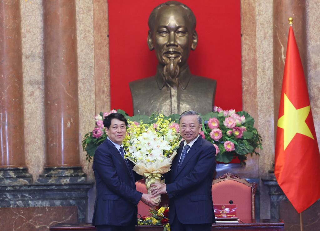 | Le secrétaire général Tô Lâm (droite) et le président Luong Cuong. |