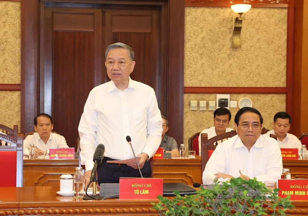 | Le secrétaire général du Parti et président Tô Lâm préside le 27 août à Hanoï une réunion de la sous-commission des documents du XIVe Congrès national du Parti. |