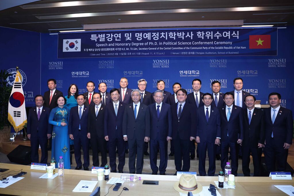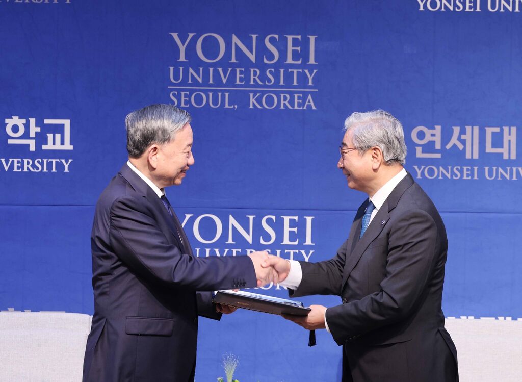 À cette occasion, le recteur de l’Université Yonsei, Yoon Dong Sup, a remis au secrétaire général Tô Lâm un diplôme de docteur honoris causa.