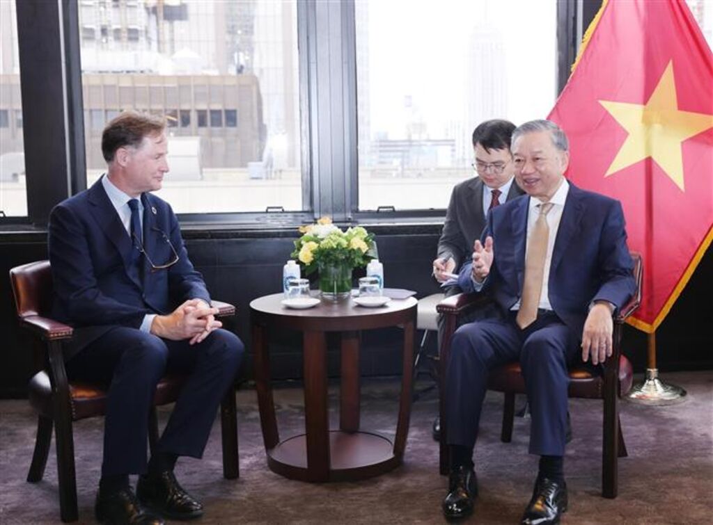 | Le secrétaire général et président Tô Lâm reçoit le président des affaires mondiales de Meta, Nick Clegg (gauche). |