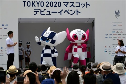 | Les mascottes de Tokyo 2020: Miraitowa (gauche) pour les Olympiques et Someity pour les Paralympiques, présentés le 22 juillet au Japon. |