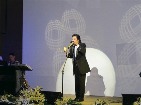 | L'harmoniciste au style le plus original du Vietnam lors d'un spectacle. |