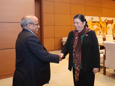 | La vice-présidente permanente de l’Assemblée nationale du Vietnam, Tong Thi Phong, et le représentant en chef de l’UNICEF au Vietnam, Youssouf Abdel-Jelil, le 20 novembre à Hanoï. |