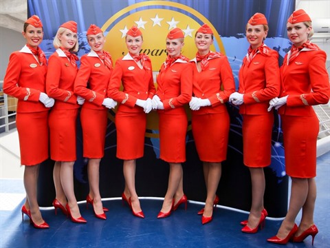 Brillant comme Vietjet Air du Vietnam, l'uniforme rouge vif d'Aeroflot (Russie) attire toujours l’attention.