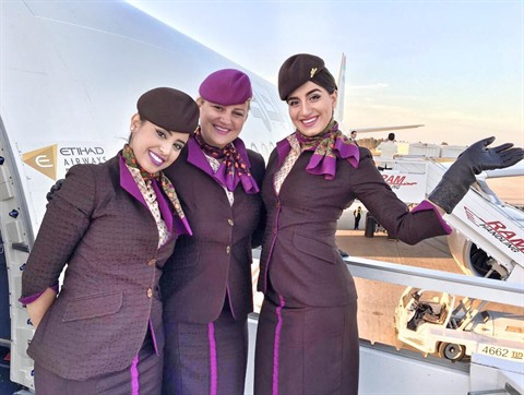 La tenue des hôtesses d'Etihad Airlines est discrète mais sexy.