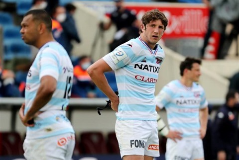 | La déception des joueurs du Racing après leur élimination en quart de finale de la Coupe d'Europe de rugby contre Bordeaux-Bègles, le 11 avril au stade Chaban Delmas. |