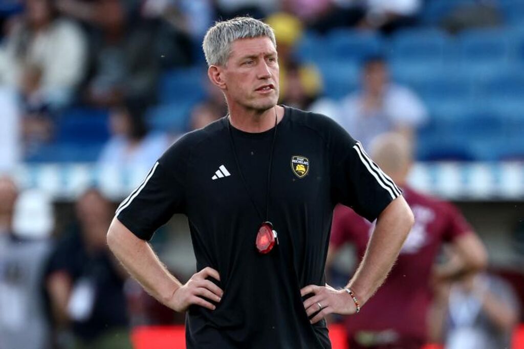 | L'entraîneur irlandais de La Rochelle, Ronan O'Gara, regarde l'échauffement avant le match de Top 14 contre l'Union Bordeaux-Bègles, à Bordeaux, le 11 mai. |