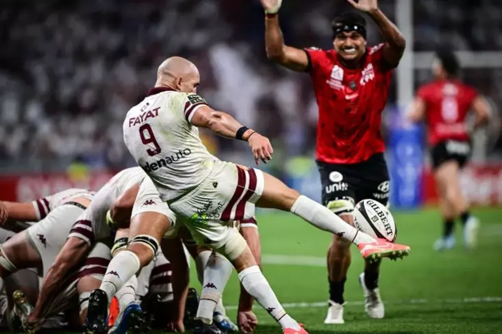Alors que les Girondins semblaient se diriger vers la pause avec une avance confortable, le RCT a enfin réglé ses rouages : derrière une mêlée, l'ouvreur italien Paolo Garbisi a débordé son homologue Matthieu Jalibert, avant de servir le centre Leicester Fainga'anuku, inarrêtable malgré un retour désespéré d'un Depoortère omniprésent en défense (40e+1, 15-10).