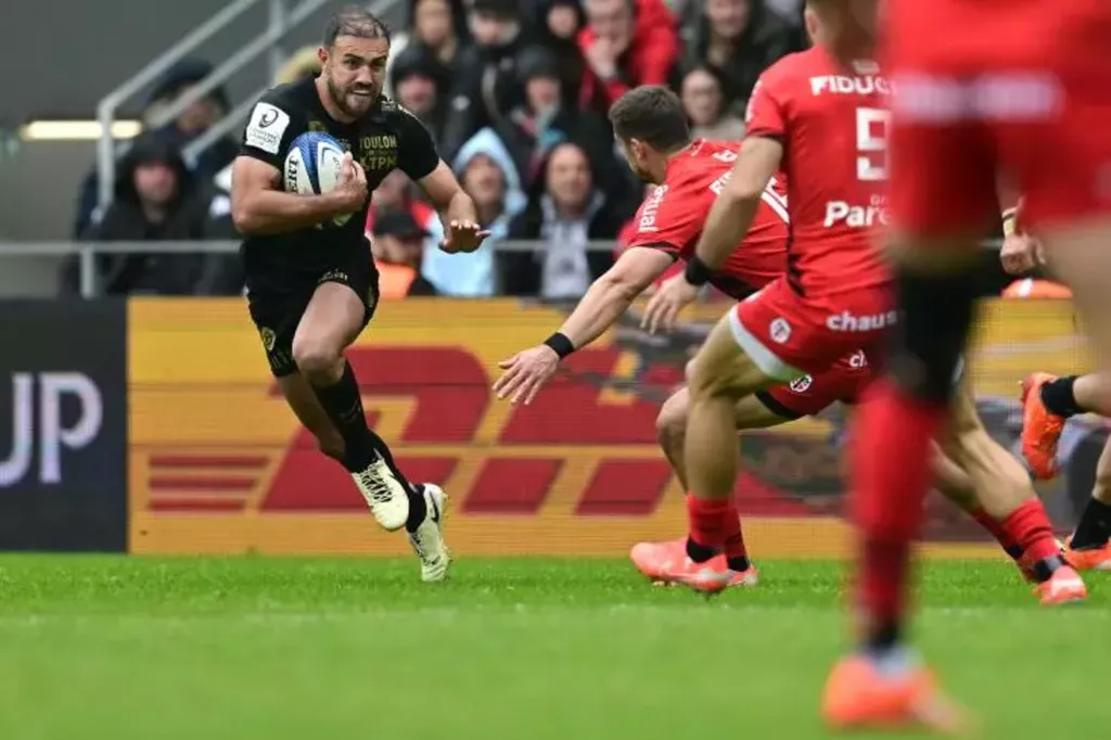 | L'arrière français de Toulon, Melvyn Jaminet, pendant le quart de finale de Champions Cup contre Toulouse, au Stade Mayol, le 13 avril 2025. |