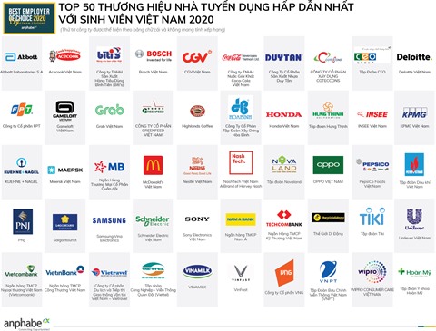 | Top 50 des marques employeurs les plus attrayantes pour les étudiants vietnamiens en 2020 dévoilé par Anphabe le 7 mai. |