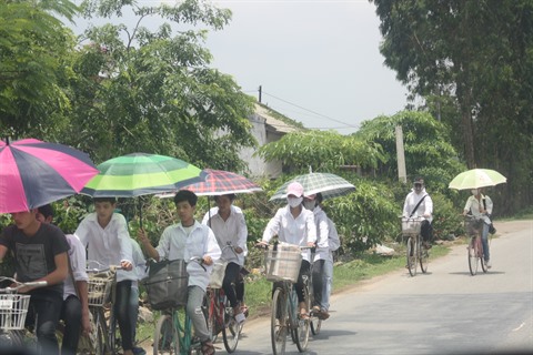 «Đi hoc», ce même refrain joyeux, je le retrouve quand je vais me promener à la campagne, des vallées les plus reculées aux bords de littoral grouillant d'activités. Il m'arrive souvent de croiser un enfant solitaire ou un groupe de copains et copines qui, en vélo ou à pied, marchent d'un pas décidé sur le bord de la route. Comme la coutume au Vietnam, lorsque l'on salue quelqu'un est de dire «Đi đâu ?» (Où allez-vous ?/Où vas-tu ?), j'ai toujours la même réponse «Đi hoc» ou «Đã tan hoc, đi vê nhà» (Je reviens de l'école, je vais à la maison).