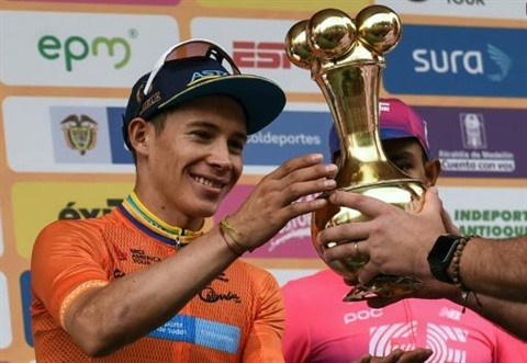 | Le Colombien Miguel Angel Lopez, vainqueur du Tour de Colombie, le 17 février à Medellin. |