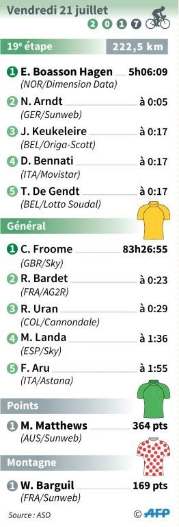 | Classements à l'issue de la 19e étape du Tour de France |