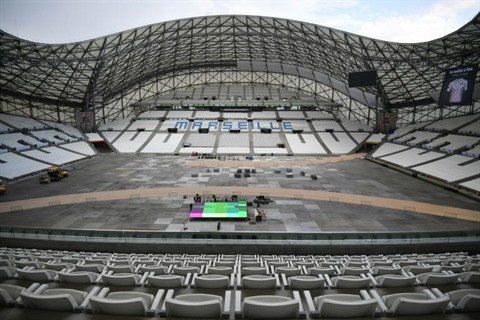 | Préparatifs le 21 juillet, au Stade Vélodrome à Marseille pour la 20e étape du Tour de France. |