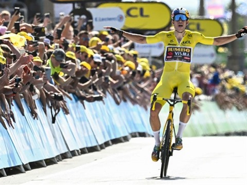 Sur la ligne, van Aert a devancé de huit secondes le premier groupe de poursuivants réglé par le Belge Jasper Philipsen, qui a levé les bras sur la ligne en croyant avoir gagné. Le Français Christophe Laporte a pris la troisième place du jour. Âgé de 27 ans, van Aert a remporté son septième succès d'étape dans le Tour depuis sa première participation en 2019.