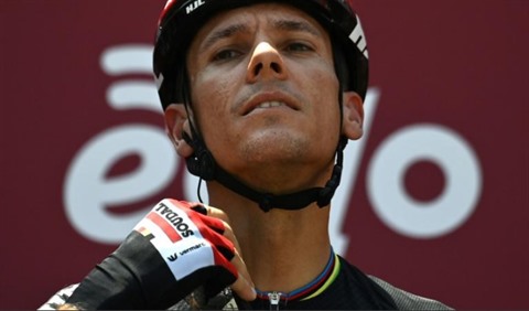 | Le cycliste belge Phillippe Gilbert de l'équipe Lotto Soudal avant le départ de la course cycliste classique d'un jour des Strade Bianche le 1er août à Sienne, en Toscane. |