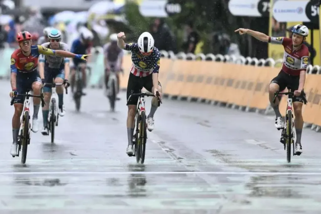 Et Quinn Simmons alias "Captain America", l'un des grands animateurs de ce Tour, a encore été impressionnant pour sauter dans la roue des attaquants, avant de remonter son leader et ensuite de ramener le peloton sur les quatre échappés du jour - Vincenzo Albanese, Quentin Pacher, Mathieu Burgaudeau et le surpuissant Jonas Abrahamsen.