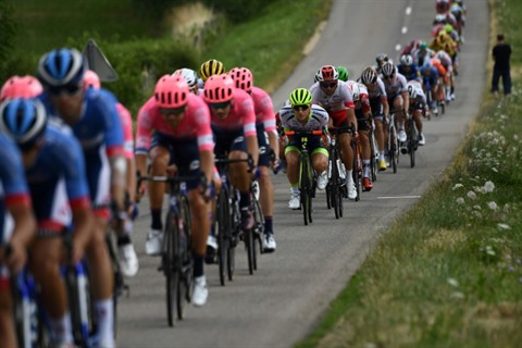 | Le peloton du Tour de France se dirige vers Chalon-sur-Saône, pour la 7e étape, le 12 juillet. |