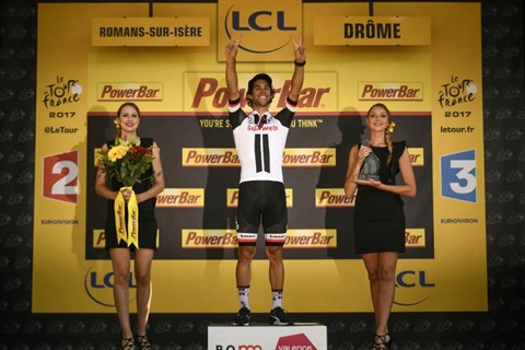 | L'Australien Michael Matthews, vainqueur de la 16e étape du Tour de France, le 18 juillet à Romans-sur-Isère. |