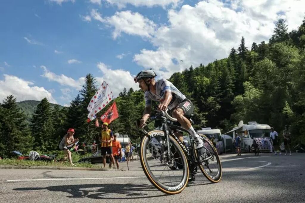 | Le Belge de la Soudal Remco Evenepoel dans la montée finale vers le plateau de Beille, lors de la 15e étape du Tour de France, le 14 juillet. |