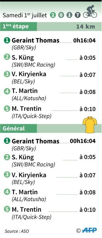 | Résultat de la 1ère étape du Tour 2017 et classement général. |