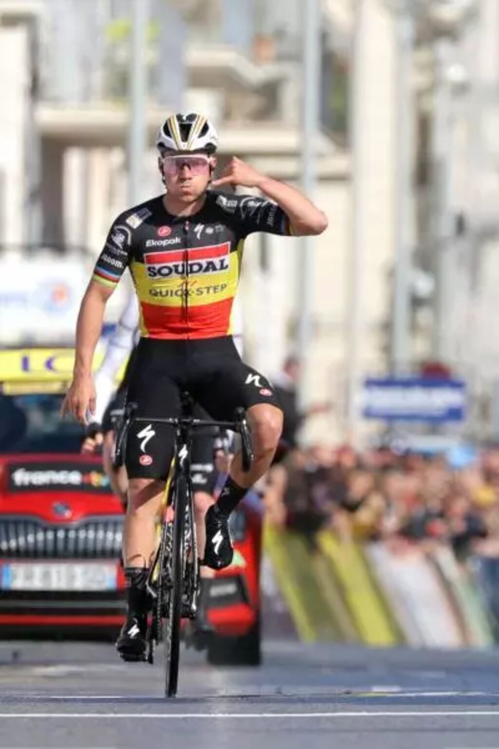 "Je lis un peu partout qu'on a mis l'accent sur les courses par étapes. C'est tout à fait vrai. Mais avec des coureurs comme Julian Alaphilippe, Yves Lampaert et Kasper Asgreen, une partie significative de notre masse salariale continue à aller vers les leaders des Flandriennes. À l'avenir, je ne parlerai plus de contrat avec personne avant Paris-Roubaix", a-t-il écrit dans sa chronique hebdomadaire pour le Het Nieuwsblad.