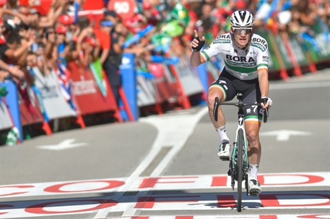 | L'Irlandais Sam Bennett remporte la 14e étape du Tour d'Espagne le 7 septembre. |