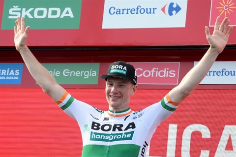 Au terme de cette étape partie d'Ibi et longue de 188 km, le coureur de l'équipe BORA-Hansgrohe a facilement devancé le Belge Edward Theuns (Trek-Segafredo) et le Slovène Luka Mezgec (Mitchelton-Scott), rejoignant ainsi le grimpeur Nairo Quintana, vainqueur surprise la veille à Calpe, en tête du classement des sprinteurs, avec 25 points.