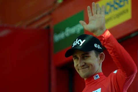 | Le Polonais Michal Kwiatkowski premier du classement général lors de la 28e étape du Tour d'Espagne le 28 août. |