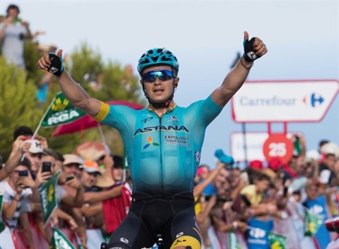 "Je suis très heureux. J'ai gagné une belle étape, dans un Grand Tour. C'est une grande victoire pour ma carrière", a dit le Kazakh à l'arrivée. "J'étais mal tombé sur le Tour de France mais j'ai eu le temps de récupérer. Ma condition est bonne et je me prépare pour les Mondiaux" (17-24 septembre en Norvège), a-t-il ajouté.