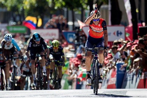 | L'Italien Vincenzo Nibali, vainqueur de la 3e étape du Tour d'Espagne, le 21 août à Andorre-la-Vieille. |