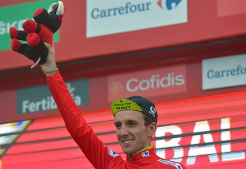 | Simon Yates (Mitchelton-Scott) a conservé son maillot rouge de leader à l'issue de la 17e étape du Tour d'Espagne, le 12 septembre. |