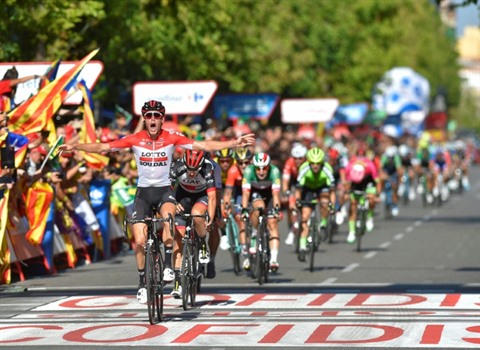 | Le triomphe du coureur belge Jelle Wallays, vainqueur de la 18e étape de "La Vuelta" à Lérida, le 13 septembre. |