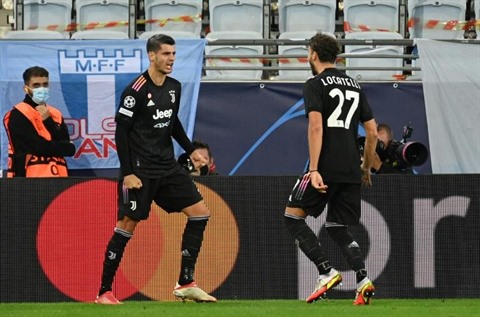 | Juventus, avec Alvaro Morata buteur et Manuel Locatelli, se s'est facilement imposée à Malmö, en Coupe d'Europe, le 14 septembre. |