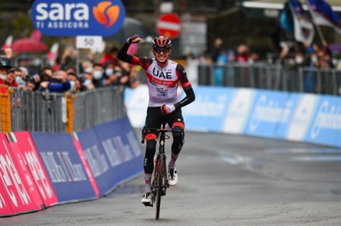 Grand perdant du jour, Almeida a sombré, en effet, en fin d'étape. Quatrième du Giro 2020, le Portugais, qui doit quitter sa formation à la fin de la saison, a lâché dès les premières rampes du Passerino. Il a cédé plus de 4 minutes à ses rivaux.