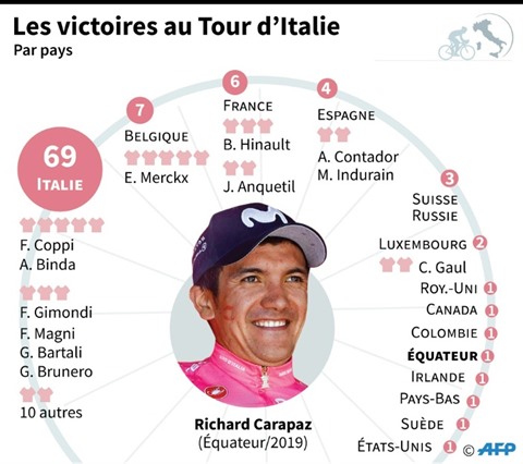 À propos du Giro, l'Équatorien (26 ans) a estimé que sa victoire dans la 14e étape arrivant à Courmayeur, "l'étape du Mont Blanc", avait été "décisive".