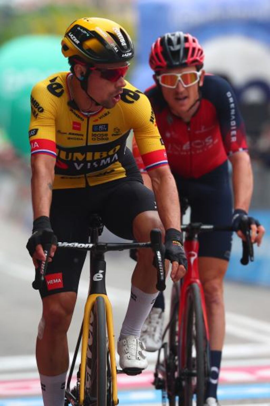 Pire, il a fini par être lâché aussi par les deux coureurs britanniques d'Ineos, Tao Geoghegan Hart et Geraint Thomas, qui ont rejoint Roglic dans la descente vers Fossombrone où le trio a franchi la ligne avec 14 secondes d'avance sur le petit groupe d'Evenepoel et de Joao Almeida.