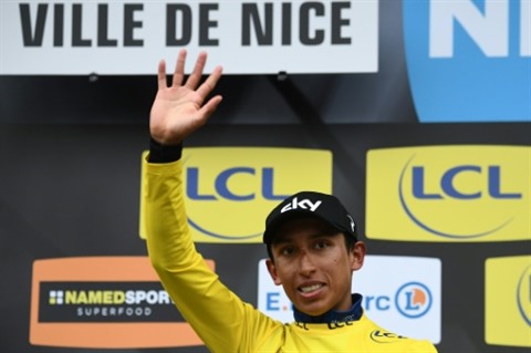 | Le Colombien Egan Bernal vainqueur de Paris-Nice le 17 mars. |