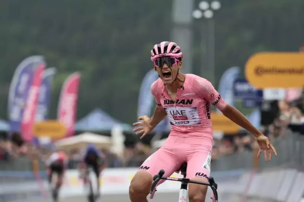 C'est la première victoire dans un grand Tour pour le jeune Mexicain. Et il l'a conquise avec style, prenant tous les risques dans la descente vers l'arrivée pour signer son triomphe d'une révérence théâtrale à la Pogacar, dans les pas duquel il marche de plus en plus résolument, à l'âge de 21 ans.