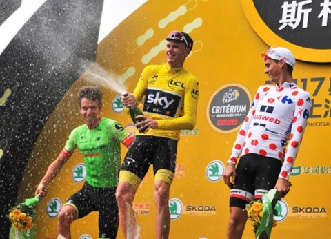 | Le "sérial vainqueur" Chris Froome, ici à Shanghai, participera en 2018 au Giro d'Italia, le seul grand Tour cycliste qu'il n'a pas encore gagné. |
