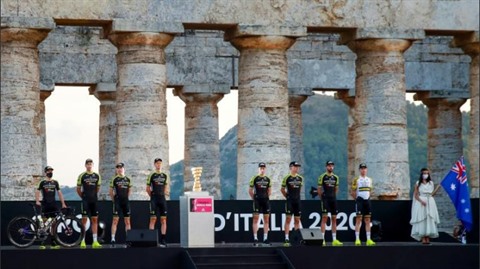 "Après deux séries de résultats négatifs au COVID-19 vendredi 9 et samedi 10 octobre, l'équipe a été informée de quatre résultats positifs pour les membres du personnel après des tests effectués dimanche soir 11 octobre", a expliqué la formation australienne, l'une des dix-neuf appartenant au WorldTour (1re division mondiale).